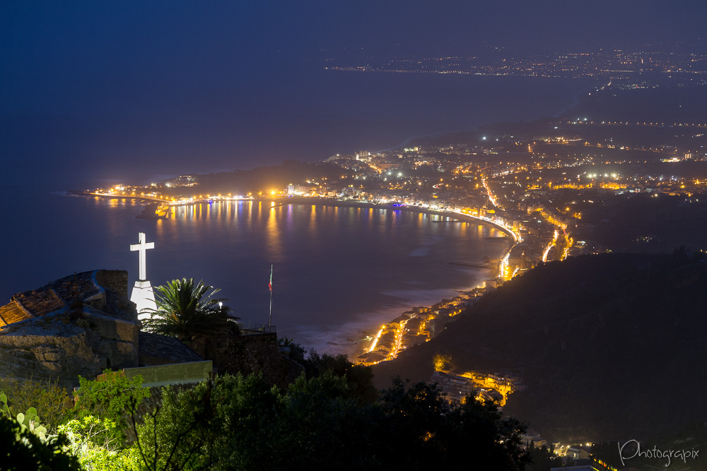 Rio de Janero ? Non, c'est Taormine avec au premier plan, l'église Madonna della rocca (construite dans la roche)