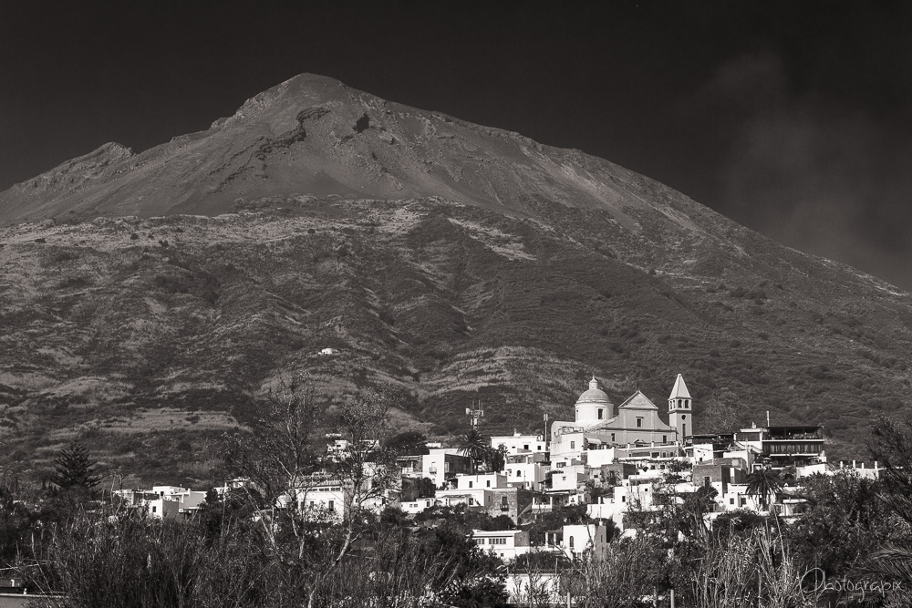 Le volcan Stromboli avec en contrebas, son village. Un de mes endroits préférés lors de mon séjour en Sicile...