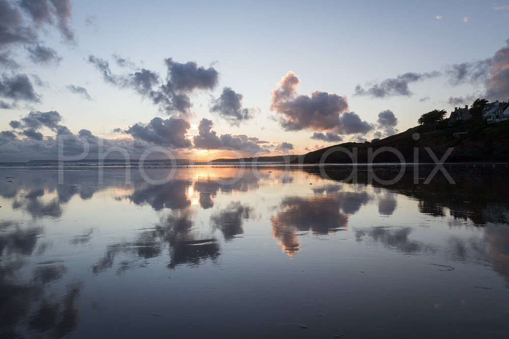... sur la plage à marée basse, au soleil couchant